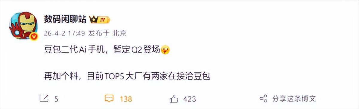 据近期数码博主的爆料,豆包二代AI手机,预计将在本季度(第二季度)登场。