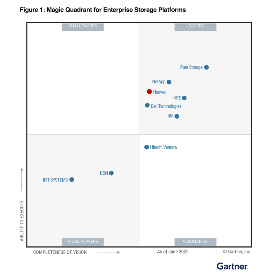 归根结底,服务好现有应用和支撑起未来人工智能战略,正成为企业建设存储的核心目标。就像Gartner最新《2025年企业存储平台魔力象限报告》(Magic Quadrant for Enterprise Storage Platforms, 2025)所明确强调:企业存储的未来在于提供一个统一、集成、多功能的平台。